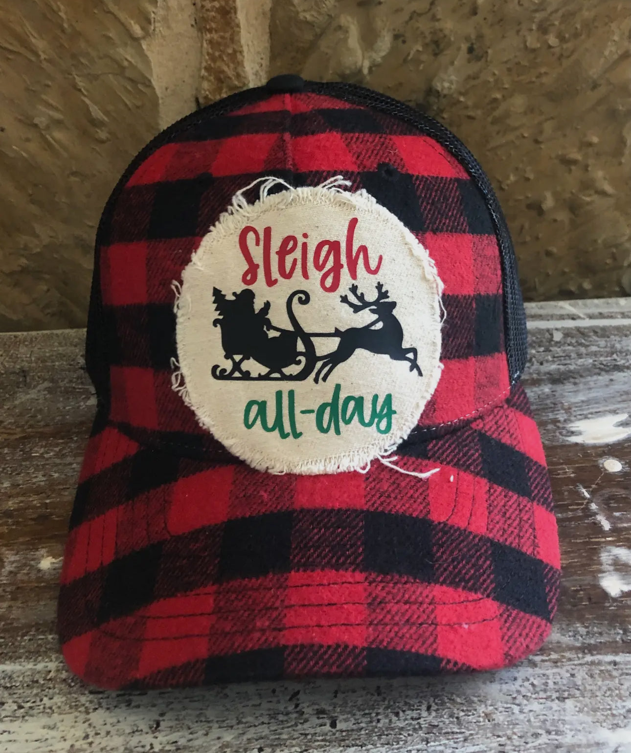 Buffalo Plaid Sleigh All Day Christmas Hat