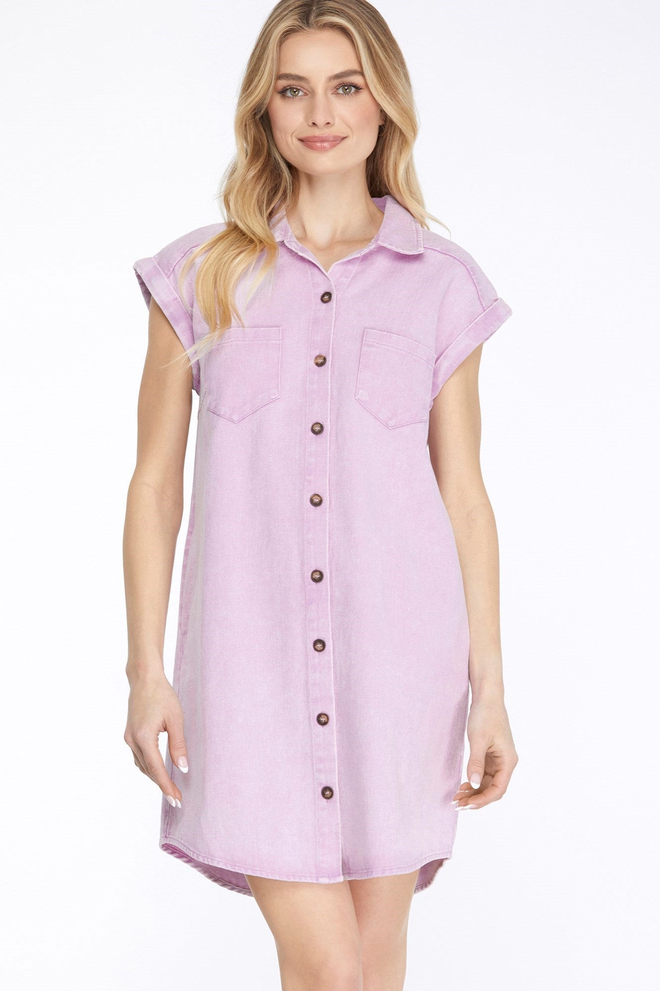 Lovely lilac color paired with a casual dressy look with side pockets make this dress a go to.
