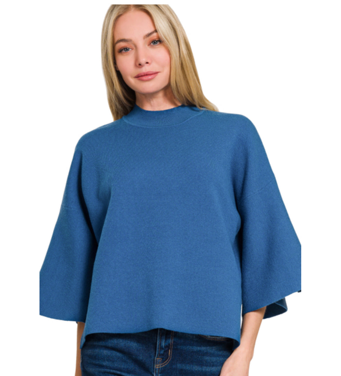 This sweater is a style original featuring rich colors with a 3/4 sleeve.